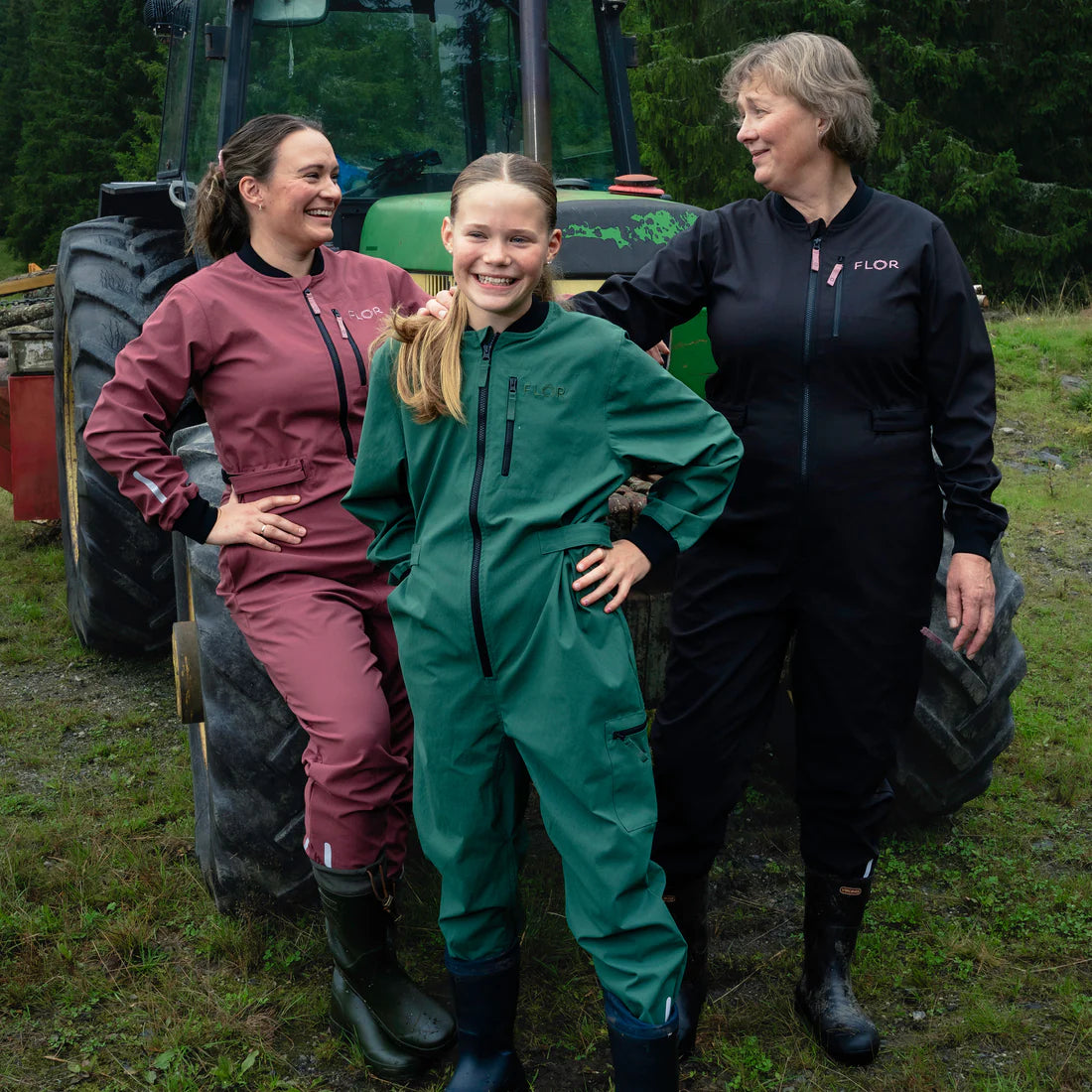 Þessi samfestingur er flaggskip Flor. Hann er þægilegur og með eindæmum praktískur. Hann fæst í dökk bláum, terra rauðum og skógargrænum.